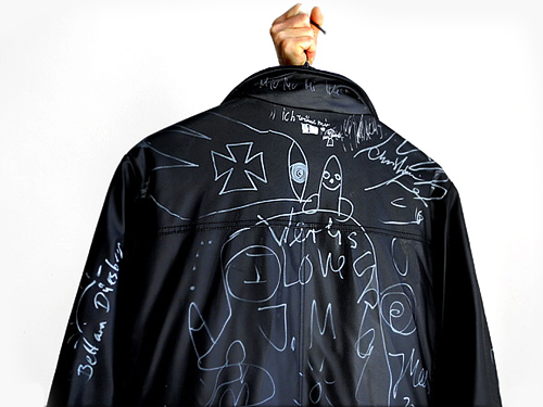 My Jacket: some artists like Jonathan Meese decorate it with their spontaneous drawings. Meine Jacke - einige Künstler haben sich hier verewiglicht: hier: Jonathan Meese, um 2008