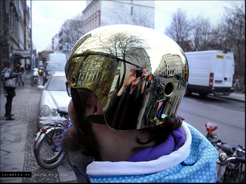 The Man With The Golden Helmet, Auguststraße in front of Cärchens Ballhaus. Der Mann mit dem Goldhelm, Auguststraße bei Cärchens Ballhaus.