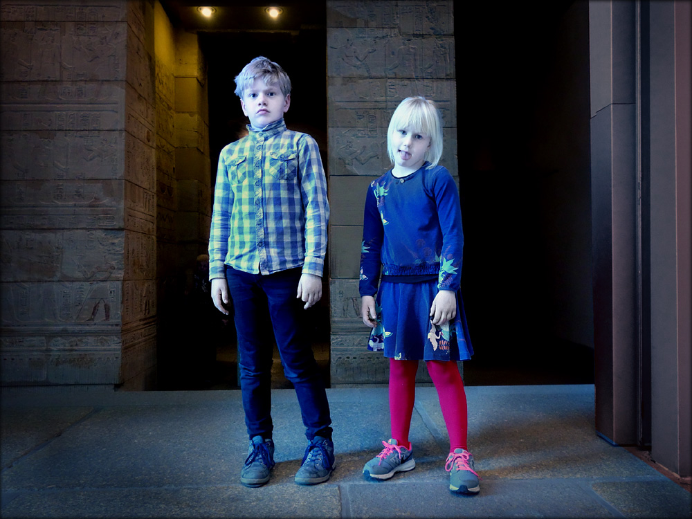 2 Kinder vor Grabmal