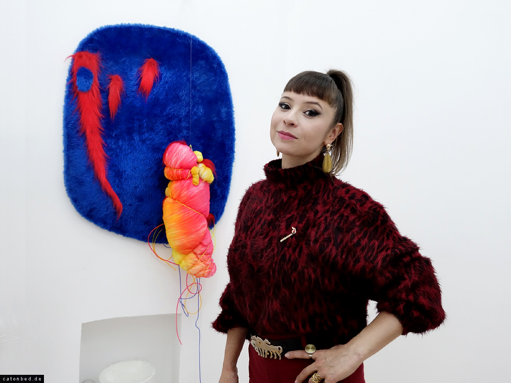 with one of her sculptures