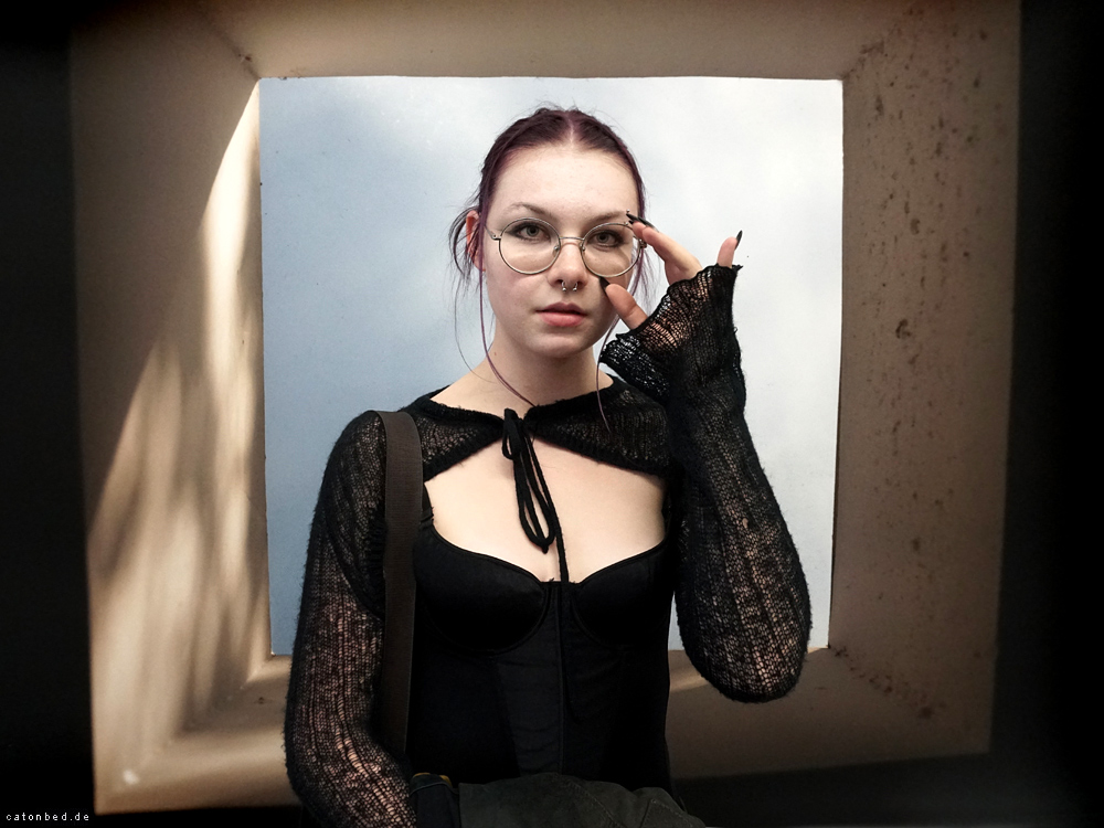 Junge Frau mit schwarzer Bluse
