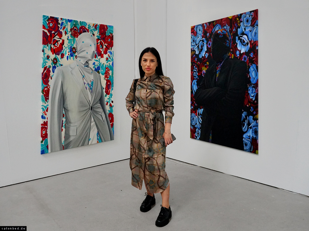 Die Künstlerin ANNA MOSKALETS vor ihren Arbeiten