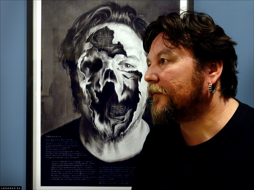 Der Künstler Michael Streun vor Selbstportrait