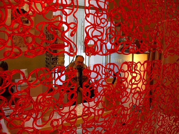 man in a museum shop