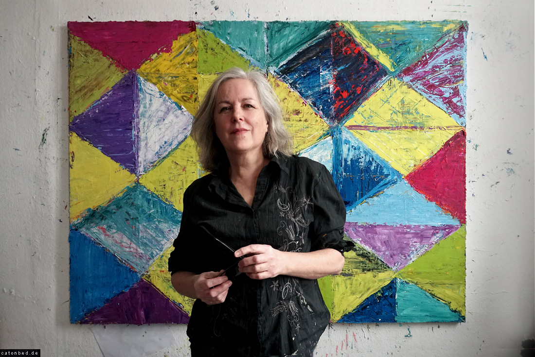 , Malerin vor ihrem Bild