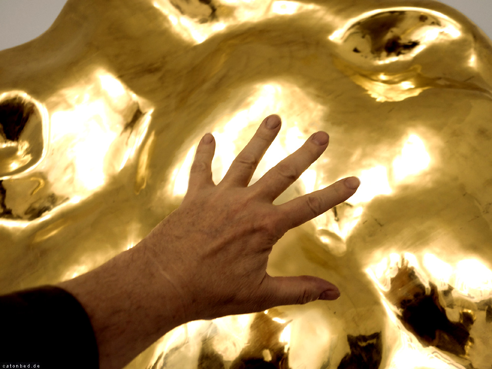 Hand vor einem Kunstwerk