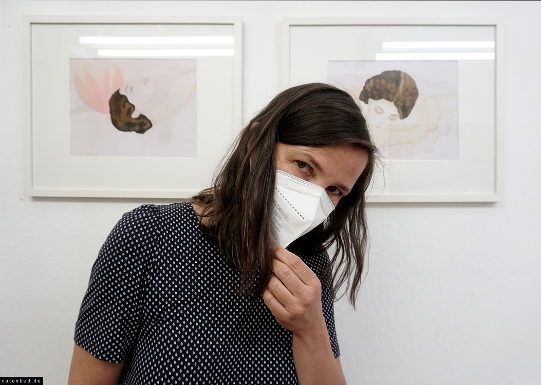 . Künstlerin vor ihren Arbeiten