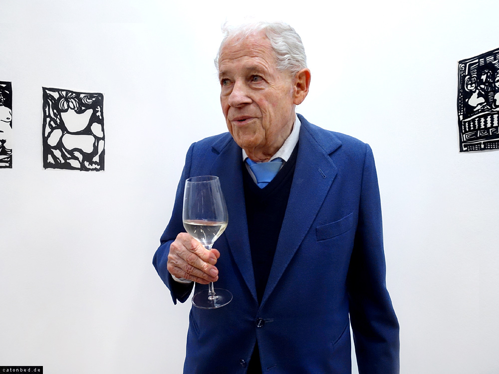 Klaus Heinrich mit seinen Zeichnungen
